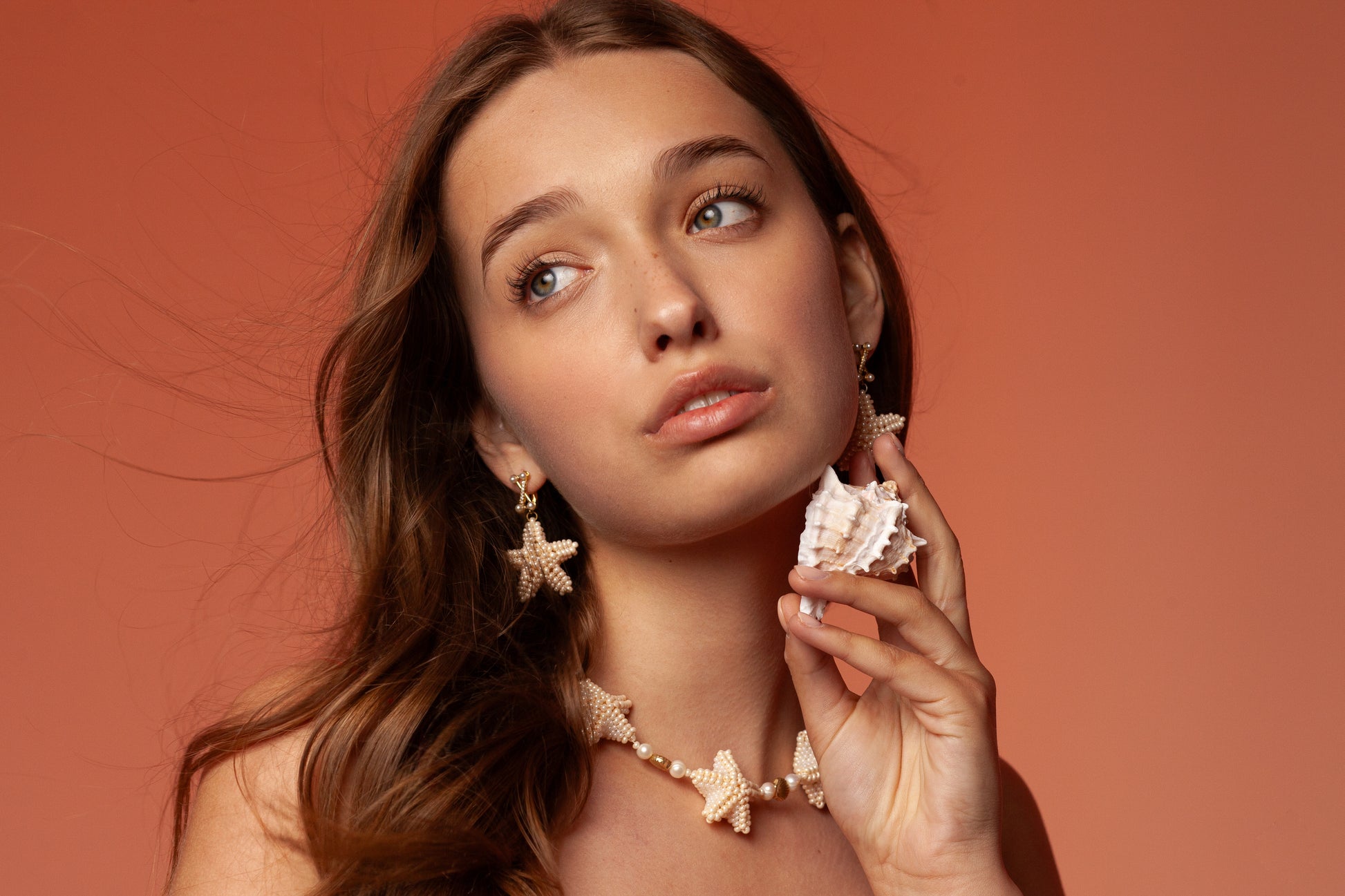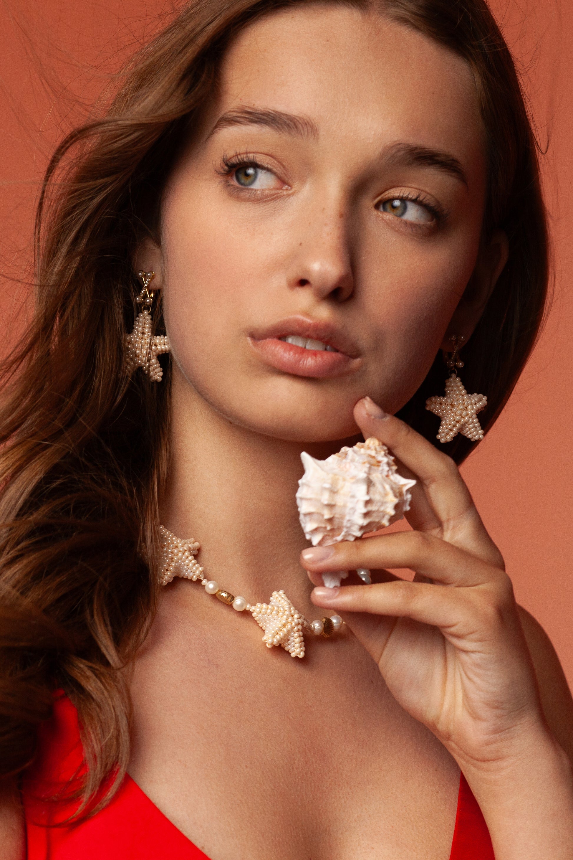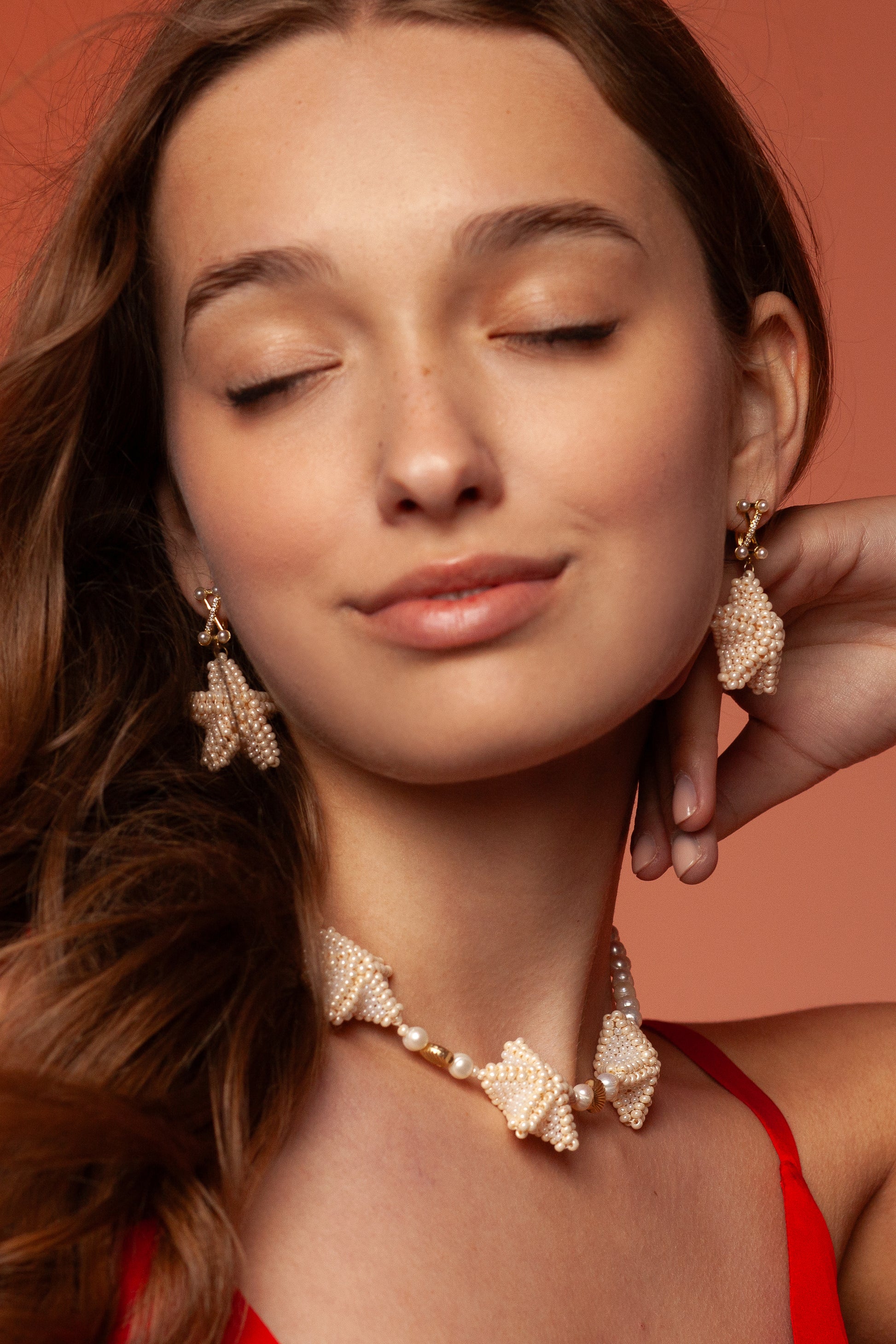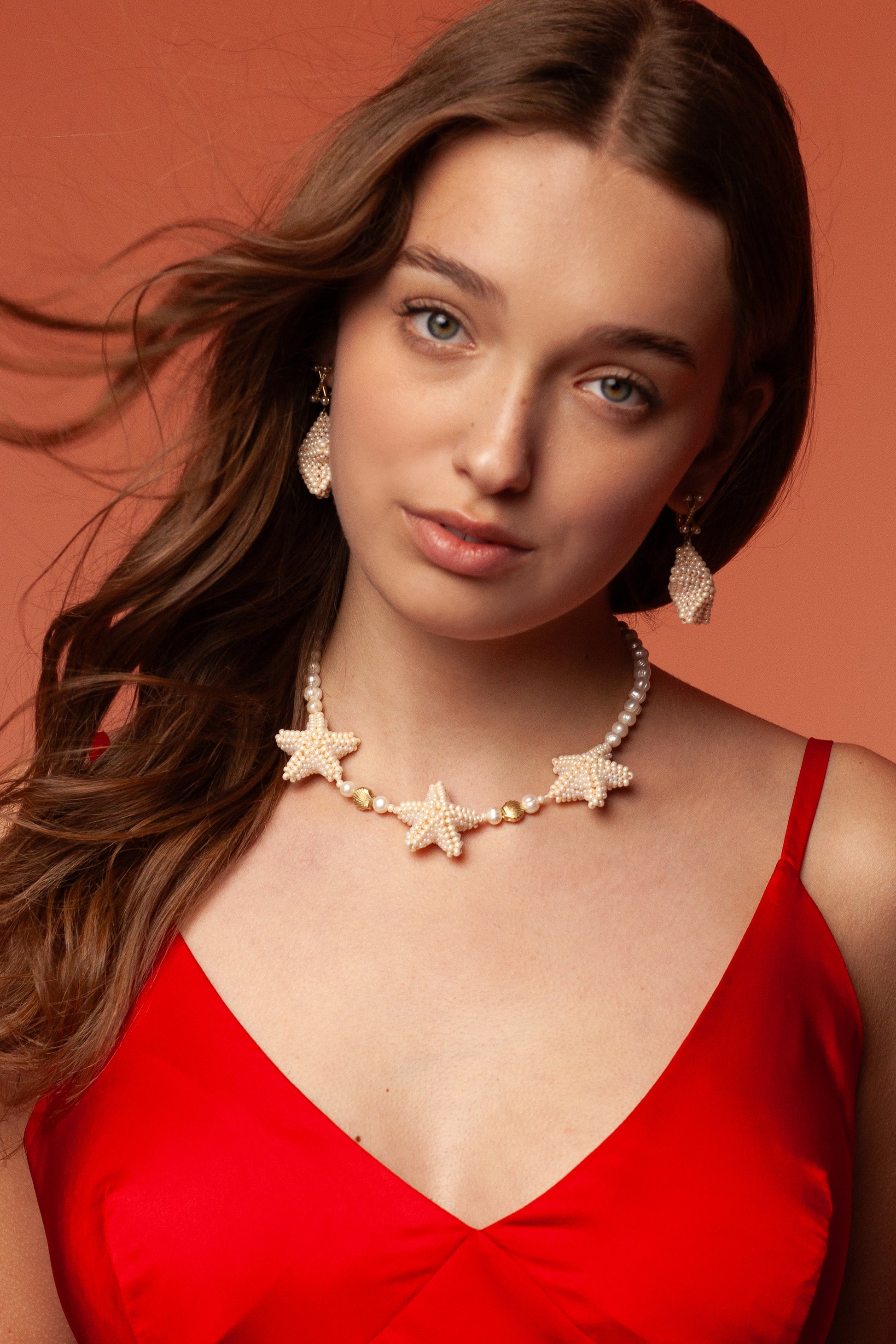 Акуратна зірочка з бісеру повторює мотив намиста, створюючи гармонійний комплект.