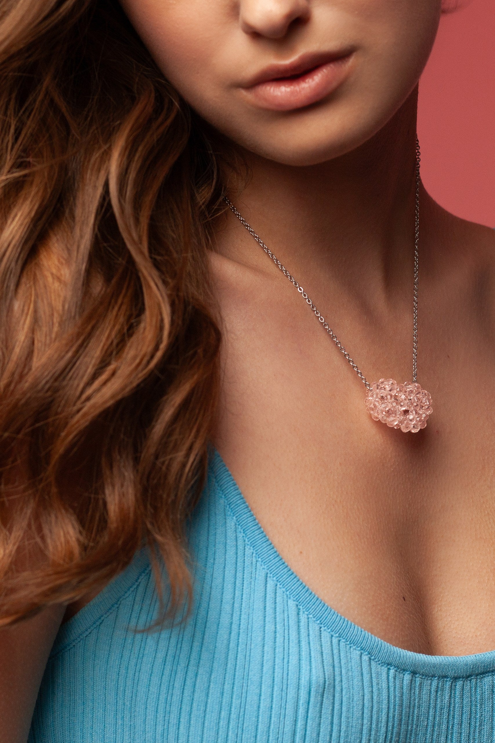 Тонкий ланцюжок із родійованим покриттям делікатно підкреслює шию, а ювелірна ліска додає легкості та відчуття невагомості.