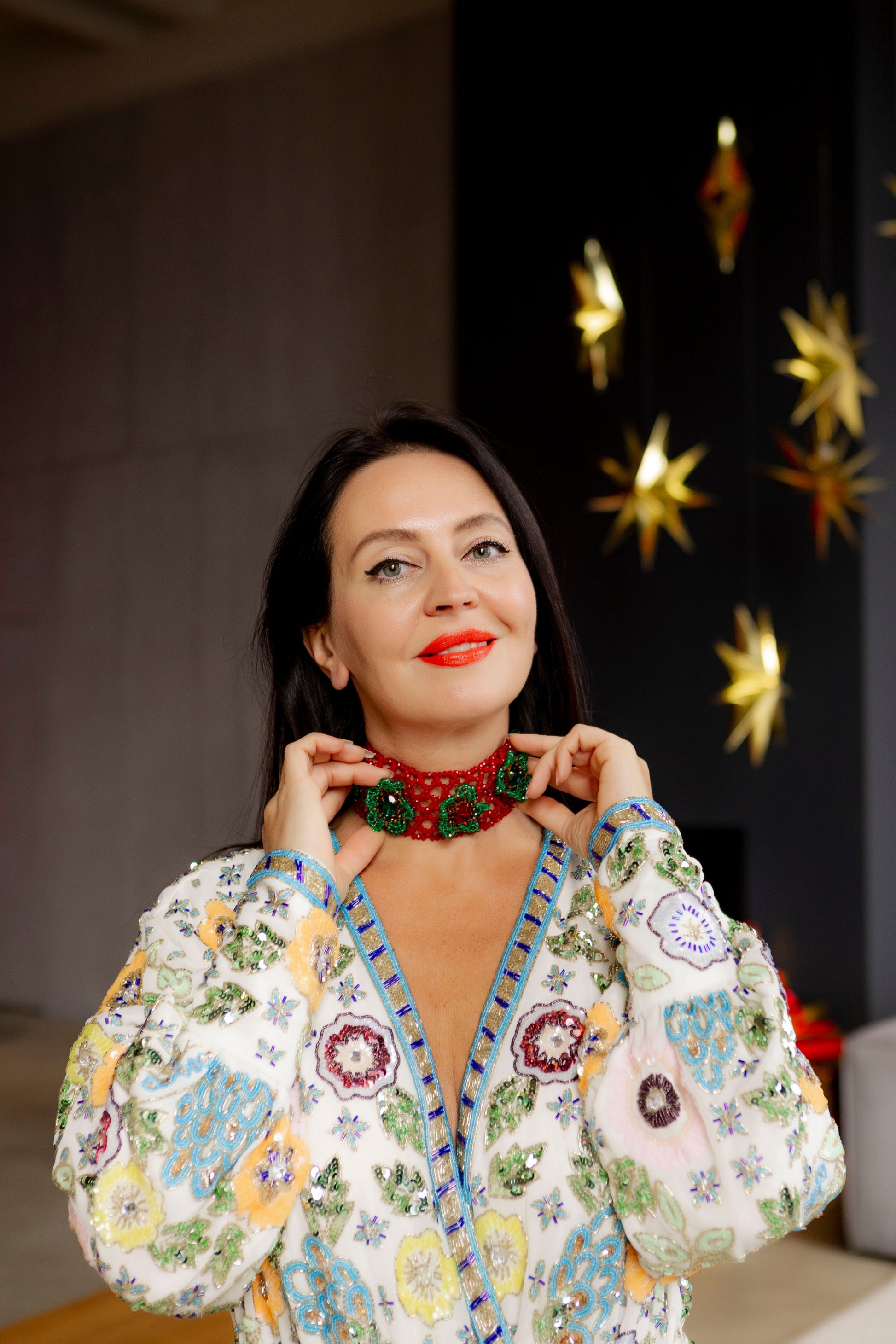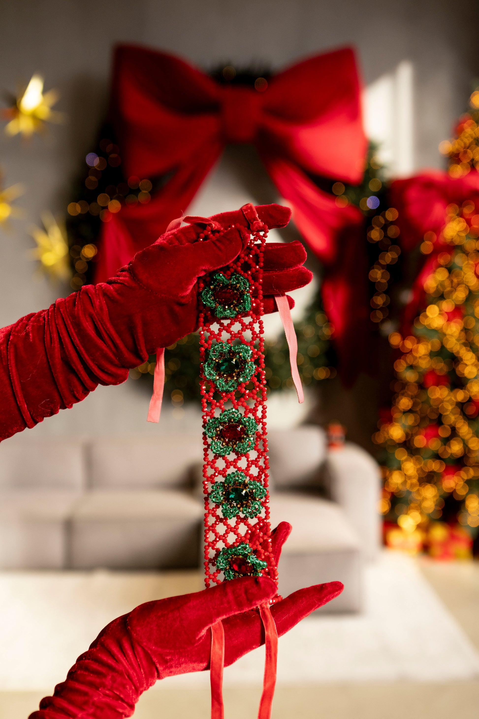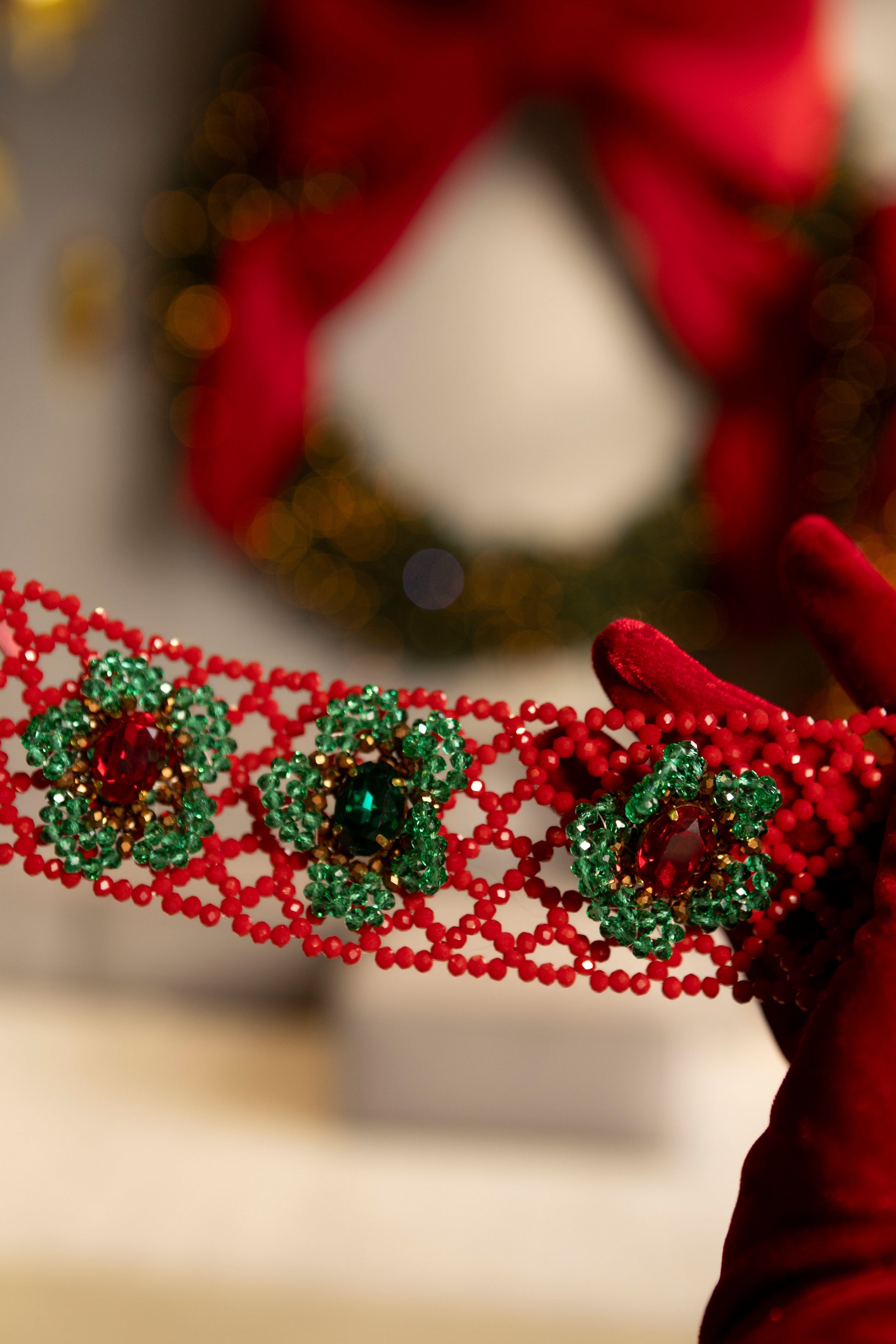 Оксамитова стрічка м’яко облягає шию, підкреслюючи контраст між ніжною текстурою та яскравим сяйвом кристалів. «Red Berry» — про сміливість бути помітною, про тепло емоцій і жіночність, яка притягує без зусиль.